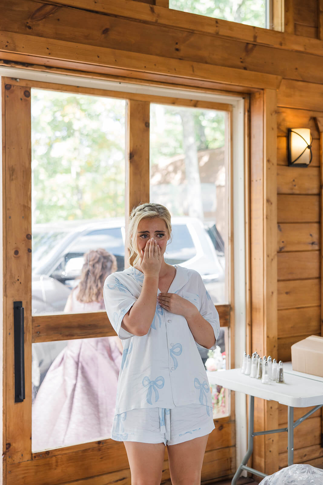 Before guests arrived, Hayden and Denis met on the venue’s wooded knoll for a private first look beneath a golden canopy of light. It was quiet and reverent, a necessary pause before the day’s whirlwind began. For couples planning a luxury mountain wedding in Tennessee, these moments offer more than beautiful photographs — they create space to connect deeply before stepping into forever.