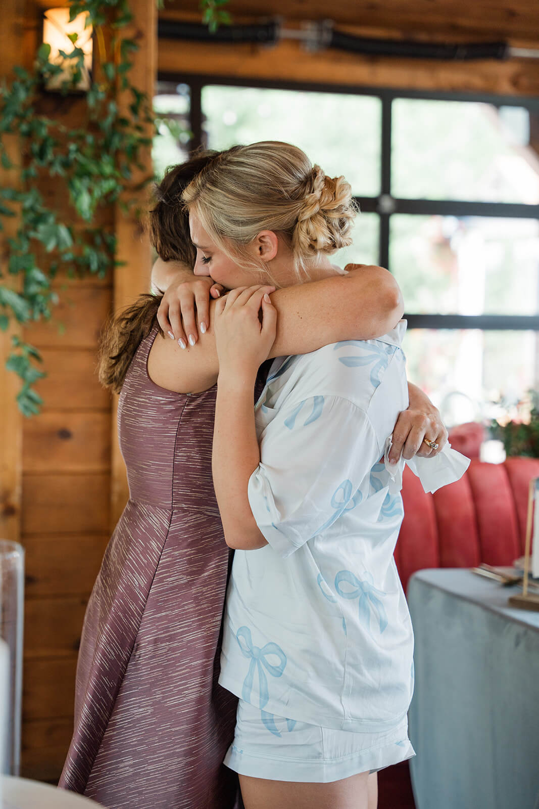 The morning unfolded in the sun-drenched bridal suite, where laughter mingled with the soft pop of champagne corks. Hayden and her bridesmaids, dressed in matching pajamas, toasted the day ahead and spent the morning getting glammed together.